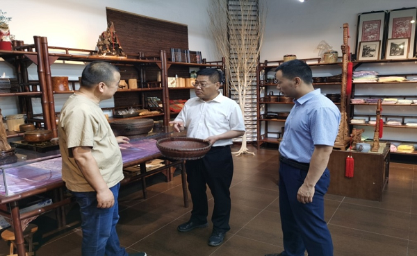 在“侨胞之家”皖南朝晖竹木艺术博物馆,牛传勇实地查看了省工艺美术大师工作室、省级非遗传习基地等活动场所,听取了项目负责人关于“侨胞之家”建设情况的详细介绍。