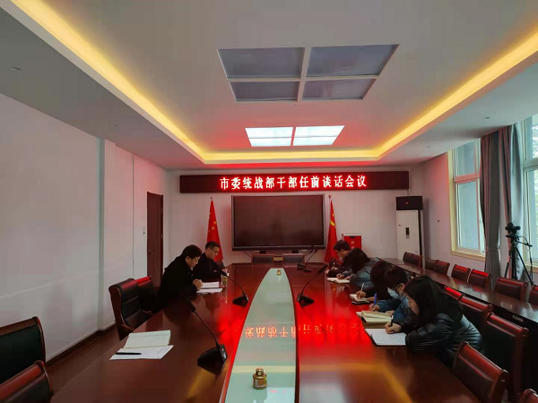 近日,市委统战部对5名新任职科级干部开展了任前集体谈话,市委统战部常务副部长严安、派驻纪检组负责人、新任职科级干部参加谈话会议。