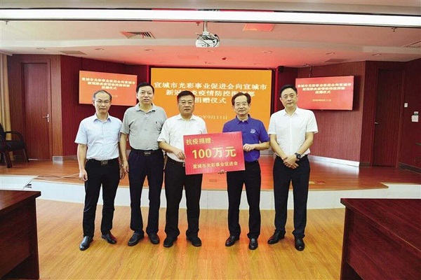 9月11日下午,市光彩会向市新冠肺炎疫情防控指挥部捐赠100万元。资金将由市新冠肺炎疫情防控指挥部根据全市常态化疫情防控需求安排使用,为打赢疫情防控战增添力量。市委常委、统战部部长牛传勇,市政协副主席、市工商联主席程观远,市委统战部副部长、市工商联党组书记沈泽冰等出席捐赠仪式。