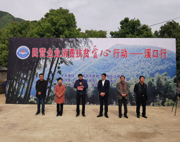 程观远在讲话中指出,举办“民营企业消费扶贫爱心行动--溪口行”活动,是引导全市民营企业、商协会参与消费扶贫的再动员、再行动,全市工商联系统要高度重视消费扶贫工作,加强统筹协调,科学制定目标任务、工作措施,深入推进民营企业助力消费扶贫工作。镇、村干部要加强组织引导,扶持贫困村特色产业,提高产品质量,增强市场竞争,拓宽销售渠道。广大民营经济人士和商协会要积极参与“百企帮百村”精准扶贫行动,在消费扶贫中要结合自身实际,有效对接贫困户,助力脱贫攻坚。