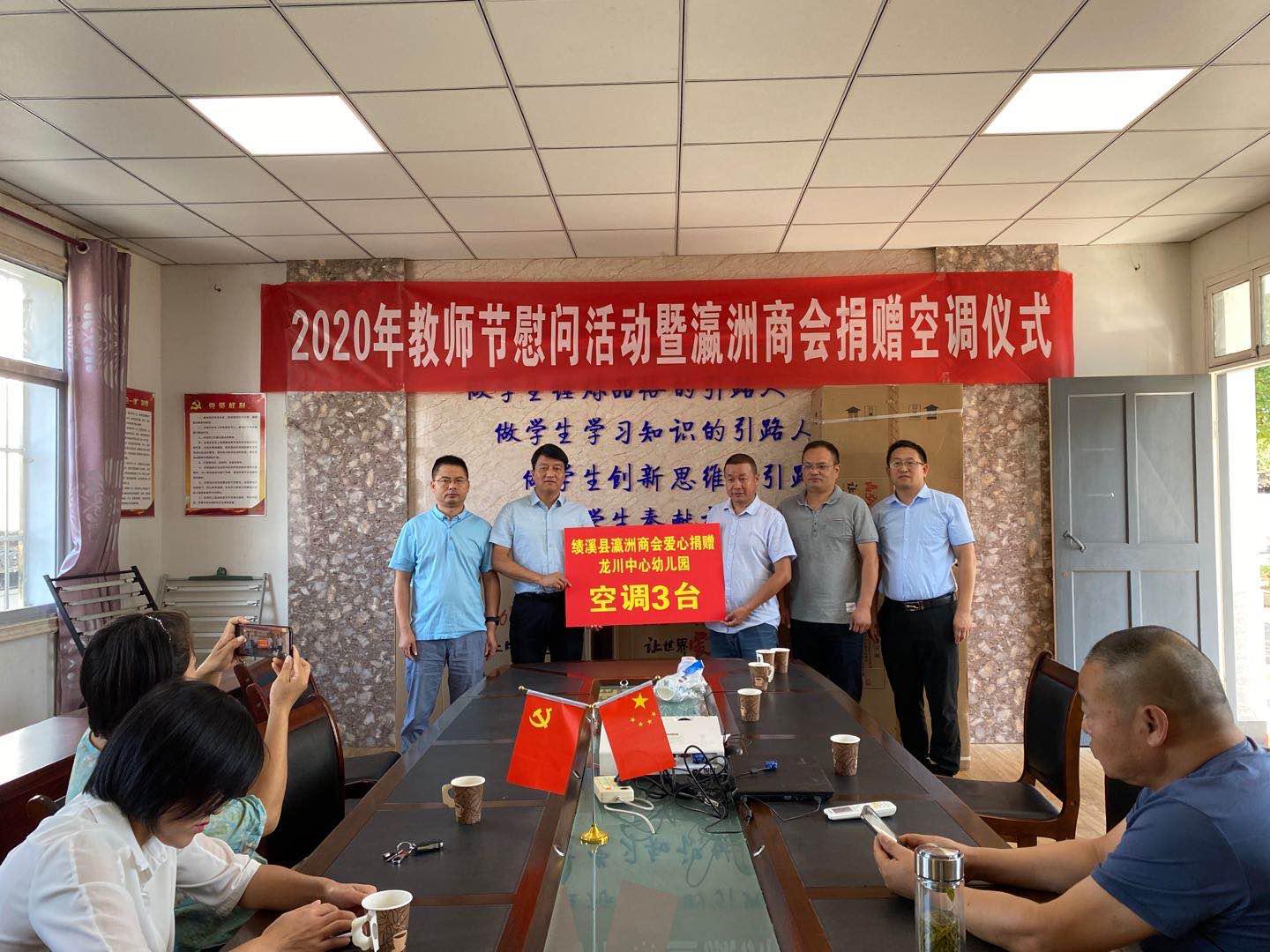 9月7日上午,绩溪县瀛洲镇举行了爱心捐赠仪式,瀛洲商会为龙川小学捐赠3台立式空调,价值17000余元。瀛洲镇党委政府向爱心企业家表示感谢,龙川小学表示学校将不断努力,提高教学水平,以优异的成绩回报社会各界的关心。