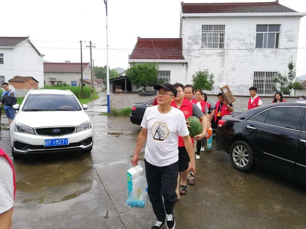 7月11日上午,伴着淅淅沥沥的小雨,宣州区电商协会志愿者们来到防汛一线开展慰问活动。